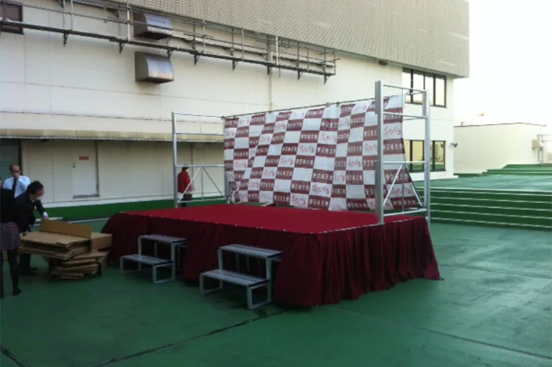 | 導入製品 | 折りたたみ式アルミ製バックパネルステージ |