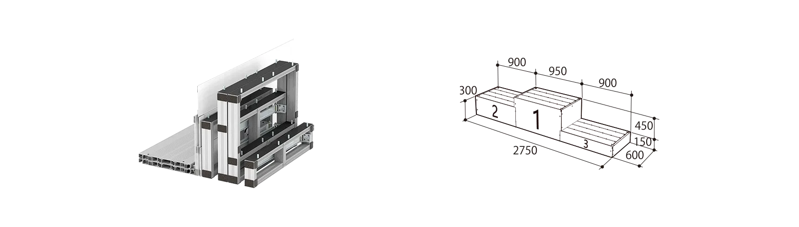 設置サイズ | 幅2750×奥行600×高さ150/300/450㎜ |