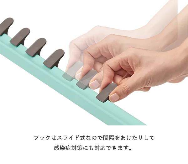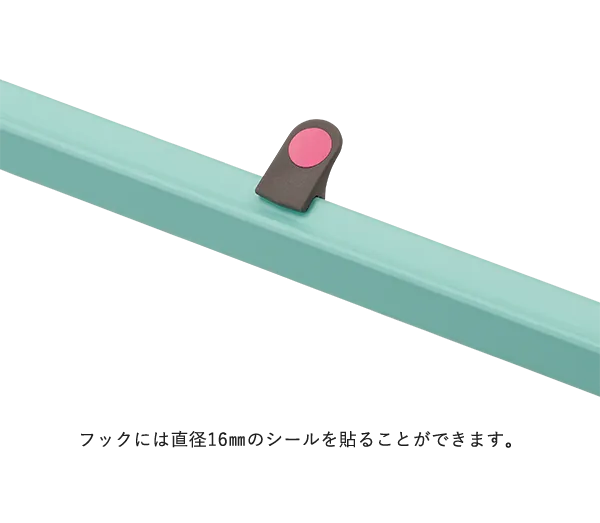 備考 | ※フックに名前シール等(直径16㎜まで)が貼れます。 ※フックの位置は自由に動かせます。 ※フック1個の耐荷重は2㎏です。 |