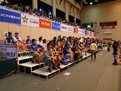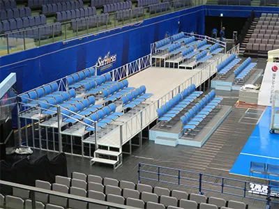 複数の製品や車椅子用の観客席、スロープなどの製品同士の組み合わせが可能。