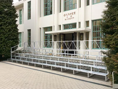 複数の製品や車椅子用の観客席、スロープなどの製品同士の組み合わせが可能。