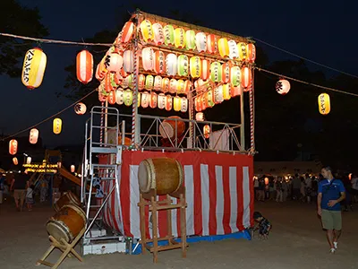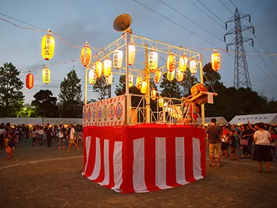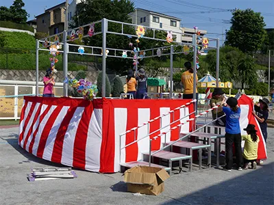 トラス部分に提灯フックを取り付けそのフックに提灯を取り付けます。